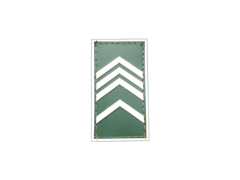 Divisa de 2º Sargento, emborrachada, verde com branco, medindo 2,5cm x 4,5cm e jogo de fecho de contato verde costurado.